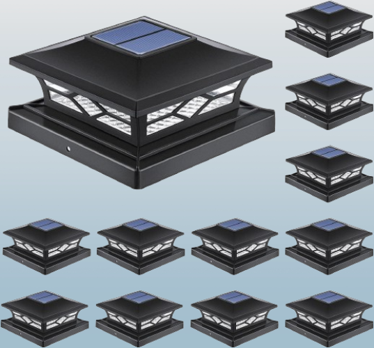 juste perfecto: viene con 3 adaptadores diferentes para un ajuste universal. Puedes utilizar estas sencillas tapas solares que se adaptan tanto a postes de 4 x 4 como a postes de 6 x 6. Esto significa que se pueden fijar a postes de 3-1/2 pulgadas x 3-1/2 pulgadas o 5-1/2 pulgadas x 5-1/2 pulgadas. Estas luces solares de poste de 4 x 4 también pueden adaptarse a un poste real de vinilo y PVC de 4 x 4 pulgadas.