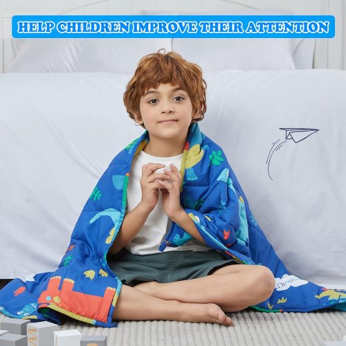 Manta pesada de dinosaurio azul de 5 libras para niños