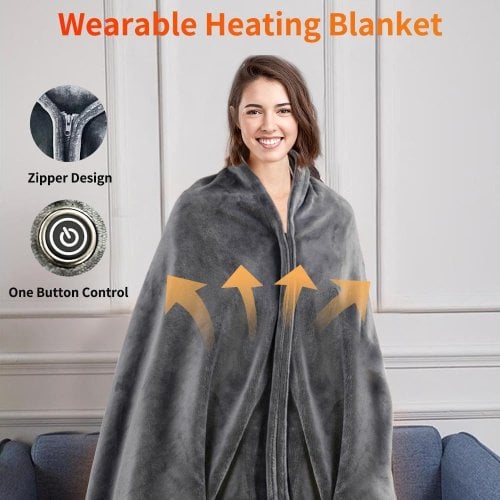 【Diseño con cremallera para una calidez segura】A diferencia de las mantas eléctricas tradicionales nuestro diseño con cremallera garantiza un ajuste cómodo que no se desliza lo que te permite moverte libremente mientras te mantienes caliente.
