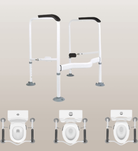 Muy seguro y resistente. Barras de apoyo para inodoros para discapacitados que le permiten sentarse de forma segura o pararse en el inodoro. Perfecto para aquellos que corren riesgo de caídas y necesitan un riel de seguridad para inodoro en el baño o aquellos que necesitan un inodoro compatible con discapacitados. Soporta 300 libras.