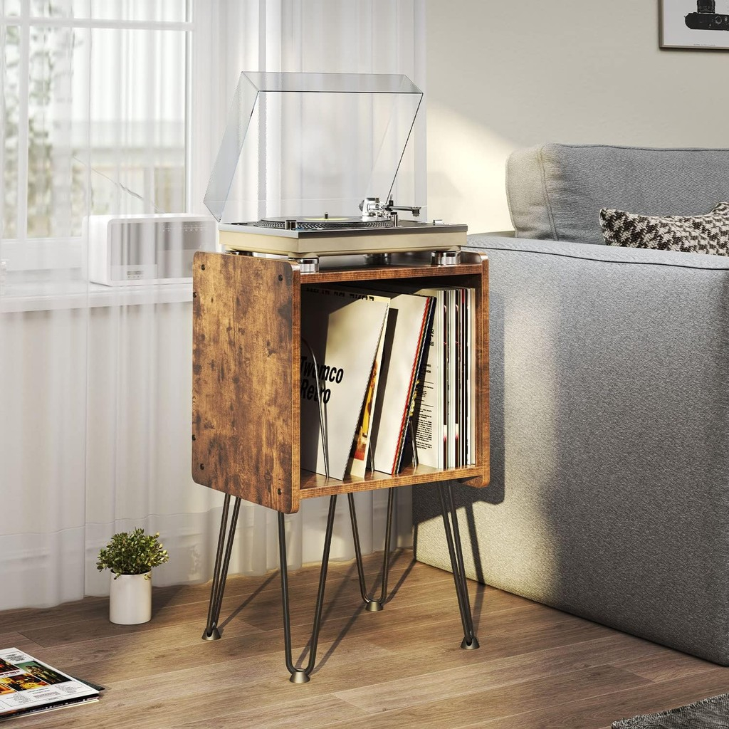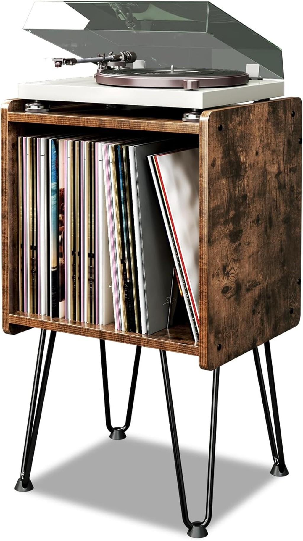 - La serie Revival espera satisfacer todas sus necesidades de soporte para tocadiscos. Si es principiante y tiene un tocadiscos todo en uno, este producto es su mejor opción. Combinando las clásicas patas de horquilla y una tabla de madera marrón, el espacio superior es compatible con la mayoría de los tocadiscos.