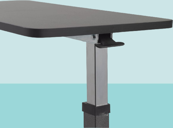 La mesa se puede elevar con la menor presión hacia arriba y se bloquea de forma segura cuando se suelta el mango de ajuste de altura