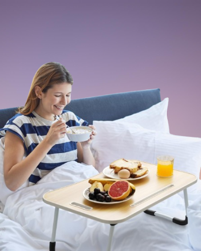 la mesa de cama plegable destaca por su versatilidad. Se puede utilizar como un elegante escritorio o banco de trabajo para que termines tu trabajo estudio o creación en silencio. Cuando no es necesario hacer se puede plegar fácilmente para aquellos que tienen espacio limitado la mesa de cama plegable es la herramienta perfecta para resolver el problema de espacio.