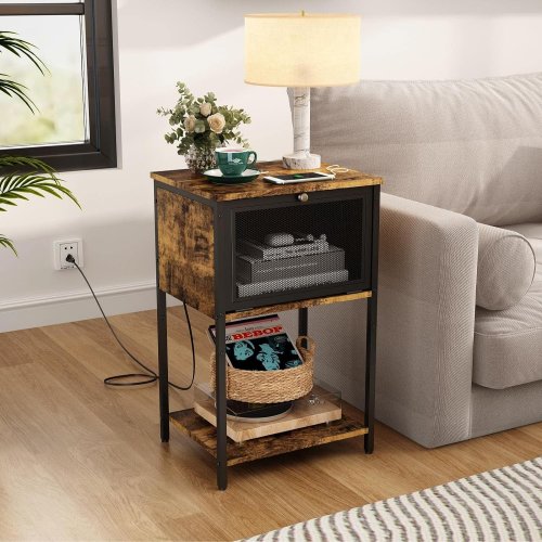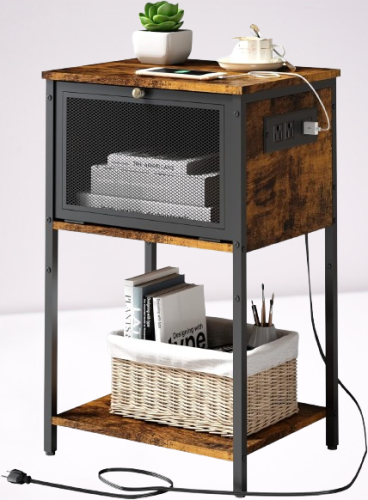 Mesita de noche con estación de carga: la mesa auxiliar con dos tomas estándar y tres puertos USB te ahorra el tiempo de buscar una fuente de alimentación y el cable de alimentación de 6.6 pies de largo te permite colocar la mesa auxiliar con estación de carga en cualquier espacio pequeño.