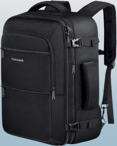 Ampliable y de gran capacidad: esta gran mochila de viaje con un diseño ampliable le ofrece una mayor capacidad de hasta 40 litros. Abriendo la cremallera para obtener mayor espacio de almacenamiento aumentando el ancho hasta 2 pulgadas. Puede acomodar fácilmente equipos de viaje de 3 a 7 días. Es una opción ideal para escapadas de fin de semana y viajes de negocios. El cierre de cremallera TSA de 180 grados le ayuda a pasar rápidamente el control de seguridad. ✈ Resistente y garantía: la mochila de viaje para hombre está hecha de poliéster liviano resistente al agua y material antirrayas que puede brindar protección en días de llovizna. Las cremalleras son fáciles de cerrar y abrir. El tamaño normal es de 20*13*7 pulgadas y el peso es de 209 libras. Esta mochila de mano cumple con los estándares de artículos de mano personales de aerolíneas como Southwest Spirit JetBlue y Frontier Airlines y puede colocarse en el compartimento superior o debajo del asiento. ✈ Diseño conveniente: esta mochila de viaje de mano está diseñada con correas acolchadas para los hombros que se pueden ocultar en el panel posterior con cremallera cuando no se usa. Dos asas acolchadas en la parte superior y lateral están diseñadas para levantar la mochila desde múltiples ángulos brindándole una experiencia de transporte más flexible como llevarla como una maleta o una mochila. Una correa de equipaje en la parte posterior está diseñada para caber en el asa del equipaje para facilitar su transporte en viajes internacionales.