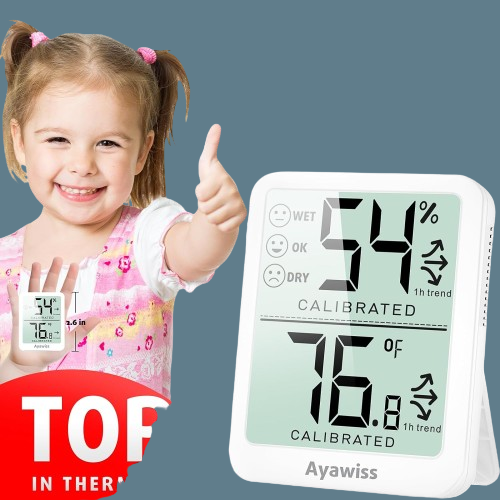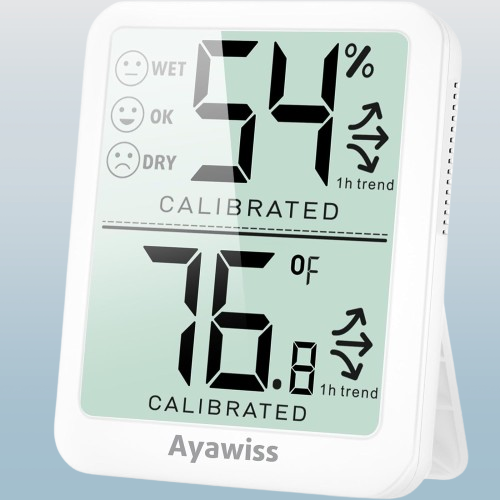 Este medidor de humedad duradero tiene un sensor digital preciso de temperatura y humedad actualiza la lectura continuamente. Proporciona iconos de humedad encantadores y tendencia de 1 hora para una lectura más fácil.