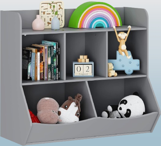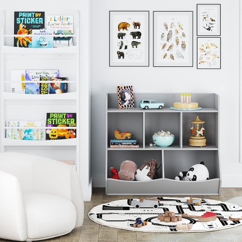 RESISTENTE Y CON ESTILO Esta estantería para niños y almacenamiento de juguetes hecha de madera técnica es duradera y cuenta con una superficie segura para los niños y fácil de limpiar. El acabado pintado en blanco añade un toque limpio a cualquier habitación.Mucho espacio de almacenamiento Este gabinete para niños cuenta con una estantería en la parte superior para libros o decoraciones del hogar. Tres compartimentos superiores y dos compartimentos grandes brindan un lugar para guardar libros juguetes artículos pesados materiales de arte y más.DISEÑO VERSÁTIL Este gabinete organizador de caja de juguetes es el mueble perfecto para guarderías guarderías salas de juegos y salas de juegos entradas vestíbulos y salas familiares.PROMUEVE LA ORGANIZACIÓN Nuestro organizador de almacenamiento para niños es una excelente manera para que nuestros pequeños organicen sus libros y juguetes. Las dimensiones totales son 17″ D x 3