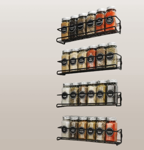 Organizador de especias de tamaño perfecto para pared: Tamaño de VIAV : 2.5 x 2.5 x 11.5 pulgadas cada estante de especias montado en la pared proporciona espacio para tarros de especias de tamaño regular (hasta 2 pulgadas) puede adaptarse a 24 tarros (no incluidos en el paquete). Tus botellas de especias se verán limpias y hermosas en tu cocina con el organizador de especias VIAV