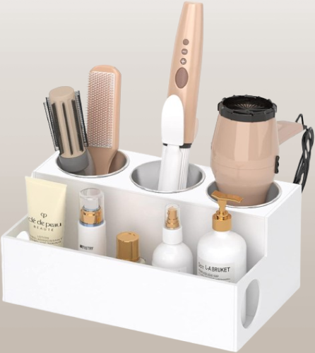 Se adapta a casi todo. Soporte para cepillo de pelo o organizador de maquillaje: configura tu portaherramientas para que se adapte a ti. Cuenta con 4 compartimentos (incluyendo compartimento de almacenamiento extra grande de 3.9 x 4 pulgadas para secador de pelo) taza de malla extraíble para peines y almacenamiento de herramientas pequeñas y espacio frontal para productos o tira de alimentación.