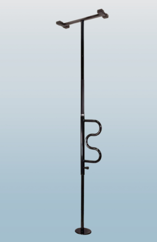 Evita caídas: el poste de seguridad proporciona seguridad y estabilidad al estar de pie y sentado pisar sobre las repisas de la bañera o la ducha o meterse en la cama la barra de agarre curva gira y se bloquea en su posición cada 45 grados soporta hasta 300 libras