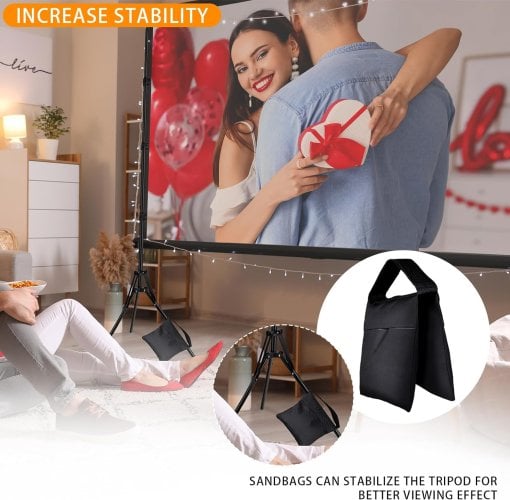 PANTALLA DE PROYECCIÓN EXTERIOR. Proporcionamos 3 picos de tierra que se pueden utilizar para asegurar el trípode al césped cuando usas la pantalla de proyección al aire libre para maximizar la prevención de tambaleo por lo que puedes disfrutar de la película en el jardín patio etc.