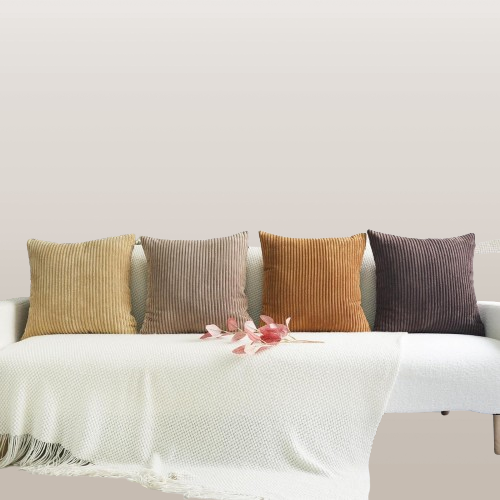 Material de alta calidad: estas fundas de almohada decorativas están hechas de pana muy suave. Tamaño: 18 x 18 pulgadas/17.7×17.7 in. Solo fundas de cojín (4 piezas). Sin relleno. Sin relleno.