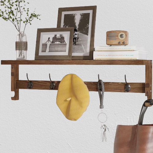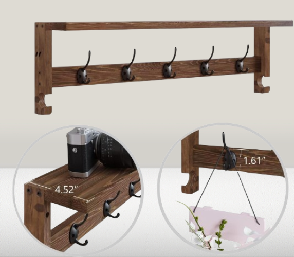 el perchero de pared de 28.9 x 4.5 pulgadas te da más espacio de almacenamiento. Puedes poner llaves y carteras en el estante para resolver el desorden