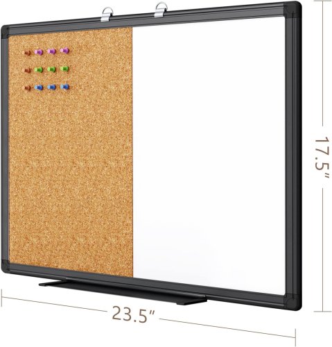 Diseño portátil y compras integrales: el tamaño exacto de este tablero de anuncios con combinación enmarcada es de 23.6 x 17.7 pulgadas. La distancia para colgar se puede ajustar libremente con los ganchos de metal móviles. El tablero de corcho y la pizarra blanca de maxtek son ideales para usar como nota tablero de anuncios o tablero de visión/sueños con todos los accesorios que vienen con 24 pines de colores 6 imanes 3 marcadores de borrado en seco 1 borrador magnético.