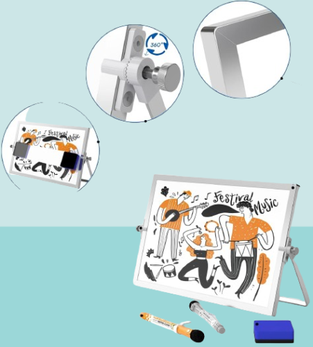 El trípode de acero con patas antideslizantes y estructura de trípode garantizan que se mantenga firme y estable mientras escribes o borra.