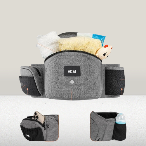 Gran capacidad y varios bolsillos: el portabebés HKAI tiene varios bolsillos para un almacenamiento cómodo. Tiene cinco bolsillos y un cierre uno de los cuales sostiene un biberón y una taza de agua el teléfono celular la portafolios y las llaves se pueden colocar en una bolsa lateral con cierre las toallitas y los pañales se pueden colocar en la parte delantera de la bolsa grande