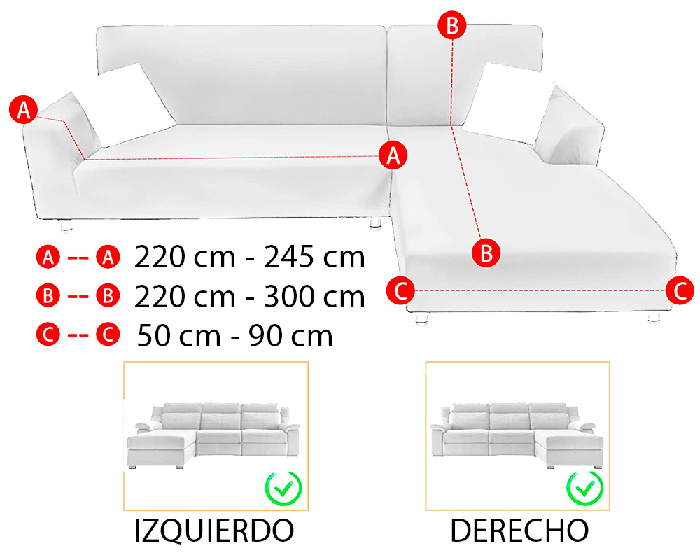 Incluye:1 funda ajustable para sofá tipo L y 2 fundas para cojines de 40cm x 40cm.