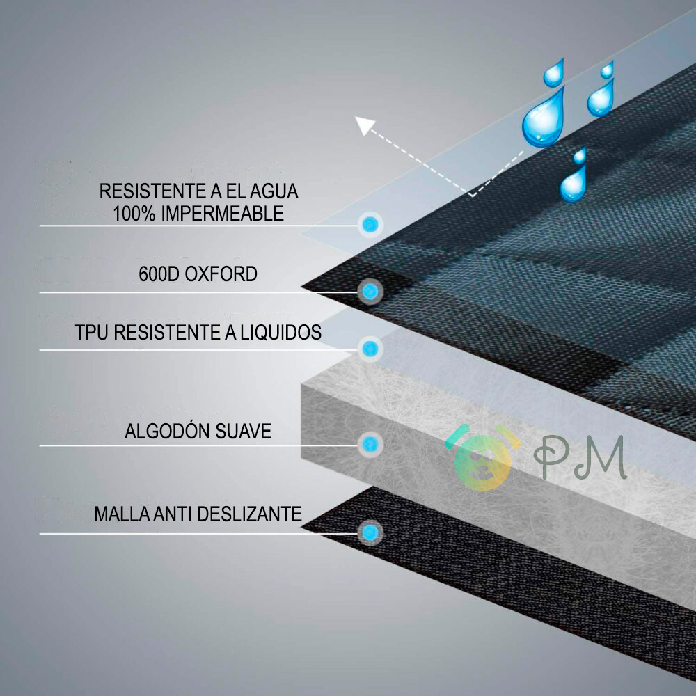 Material: Fabricado en materiales de optima calidad para larga duración, Tela Oxford de alta resistencia y algodón PP suave e Impermeable.