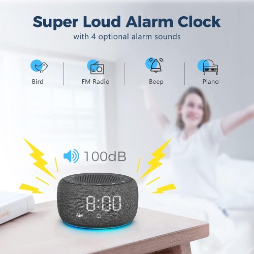 4 sonidos de alarma y atenuador: Elija un sonido de alarma diferente (pájaro piano pitido y radio) para mejorar su experiencia de despertar (especialmente su radio FM favorita). Proporciona una pantalla regulable del 0 al 100% para que puedas atenuar los números completamente o muy brillantes.