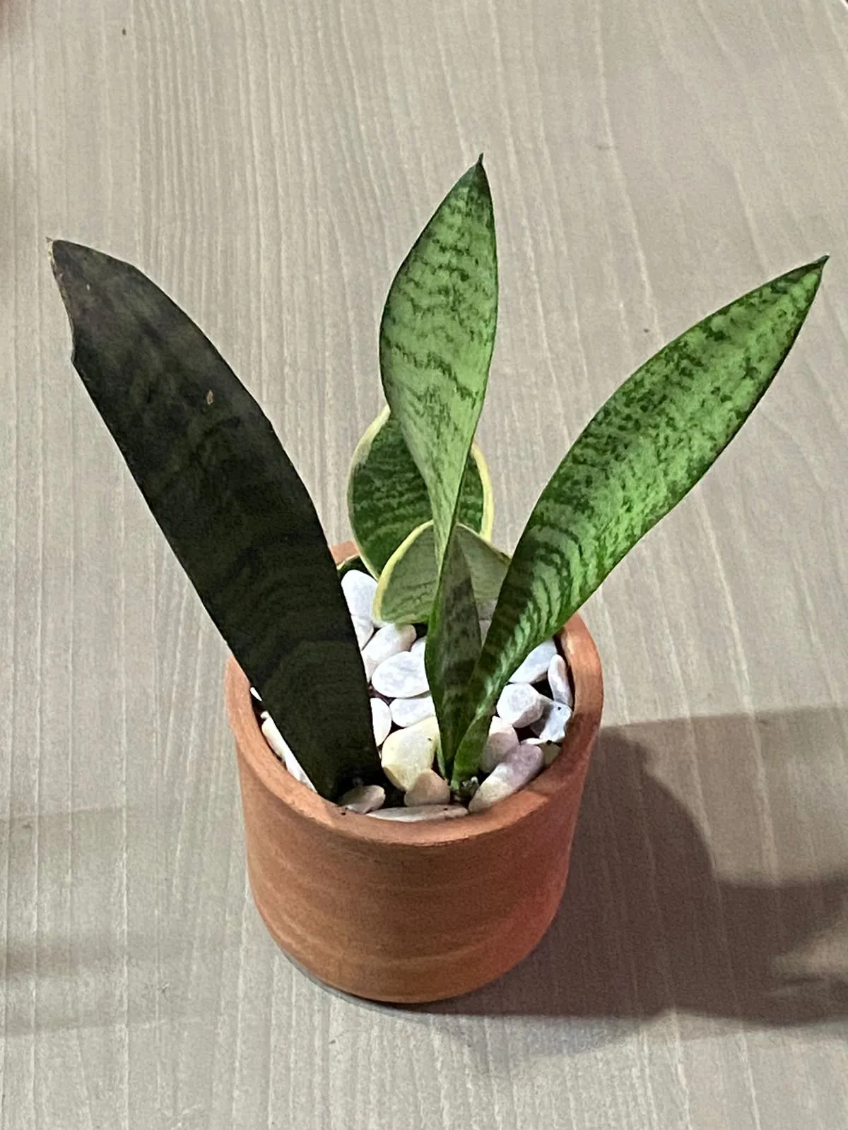 Sansevieria Elegancia – Mini y Variegada en Maceta Artesanal