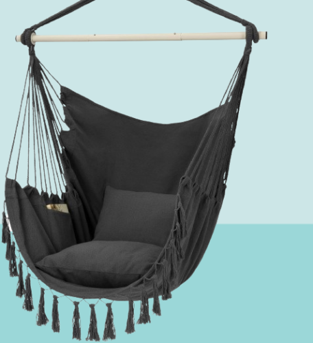 Disfruta de la comodidad. Esta hamaca moderna es cómoda y duradera. No se deshilachará el usuario puede disfrutar de la sensación cómoda del cojín suave y es lo suficientemente grande no como otras sillas colgantes de tamaño pequeño en las que solo te puedes sentar esta silla te permite recostarte y disfrutar una relajación completa ninguna otra silla te puede ofrecer lo mismo.