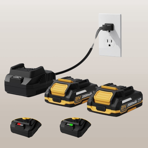Carga más rápida y sin complicaciones: A veces los clientes se molestan al esperar demasiado tiempo para cargar la batería. Pero con el soplador de hojas inalámbrico LAZYBOI obtendrás la comodidad de una carga rápida de 1 hora. El indicador LED muestra rojo mientras se carga y verde cuando está completamente cargado. El juego inalámbrico de soplador de hojas viene con un cargador rápido y dos baterías de 2.0ah 21v que mantienen 40 minutos de trabajo para el modo de baja velocidad y 30 minutos para el modo de alta velocidad.