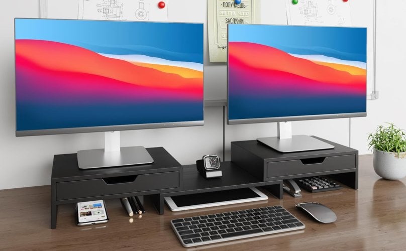 Soporte de monitor con 2 cajones para escritorio
