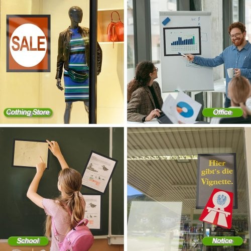 Fácil de usar: el soporte magnético para documentos es muy fácil de colocar y puedes cambiar los letreros rápida y fácilmente. No hay necesidad de herramientas simplemente retira la parte posterior de papel protector blanco. Al abrir el marco frontal coloca tu póster en el interior funcionaría muy bien para algún tipo de negocio en el que necesites intercambiar y quitar un letrero a diario.