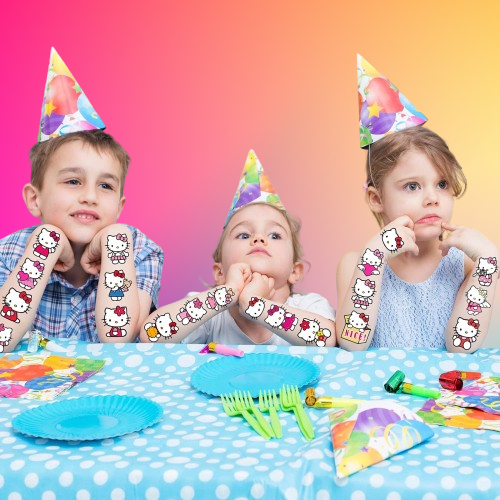 Suministros únicos para fiesta de cumpleaños de gatito: patrones diseñados para los dibujos animados más populares. Adecuado para fiestas temáticas de gatitos. Si eres un gran fans no puedes perderte los tatuajes inspirados.