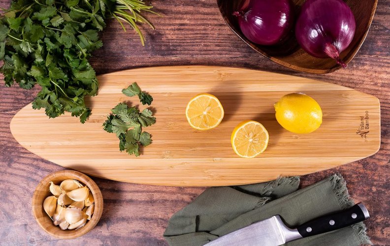 Lanza tus tablas de cortar endebles y de plástico y opta por una opción más resistente. El bambú es un recurso renovable que es increíblemente suave duradero y seguro para sus cuchillos y otras herramientas de cocina. Además su hermoso acabado es una adición atractiva a tus encimeras.