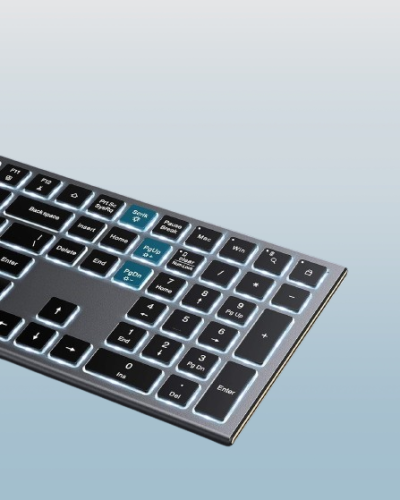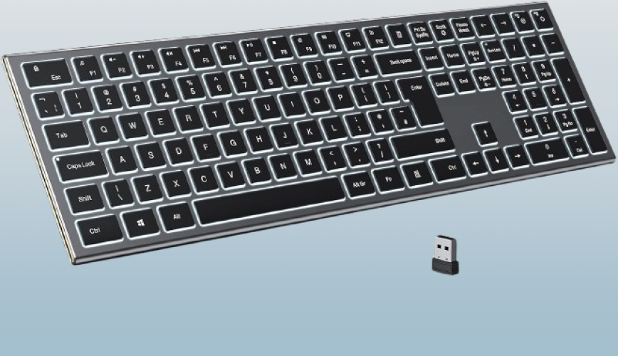 Teclado inalámbrico iluminado: la retroiluminación blanca del teclado iluminado es brillante y se distribuye uniformemente sin deslumbramiento ,menos contaminación lumínica que la retroiluminación colorida protege tus ojos y es más conveniente para escribir en entornos con poca luz. Ideal para trabajo de estudio oficina y hogar. Brillo ajustable de 3 niveles: bajo-medio-alto para adaptarse a todas tus necesidades. La retroiluminación se puede encender y apagar