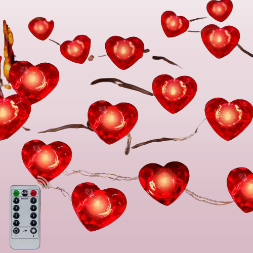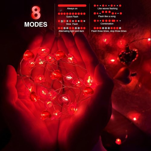 Guirnaldas de luces acogedoras: las luces con diseño de corazón tienen un cálido color rojo suave cuando están encendidas es perfecto para decorar un ambiente especial del día de San Valentín bodas aniversarios o fiestas.