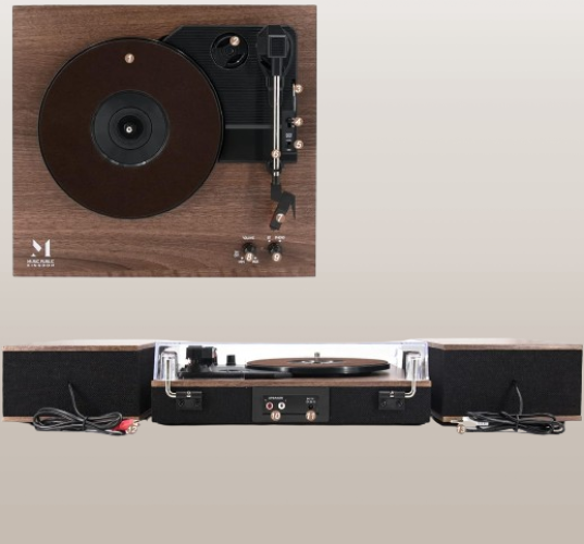 Tocadiscos Bluetooth de vinilo de 3 velocidades color marron