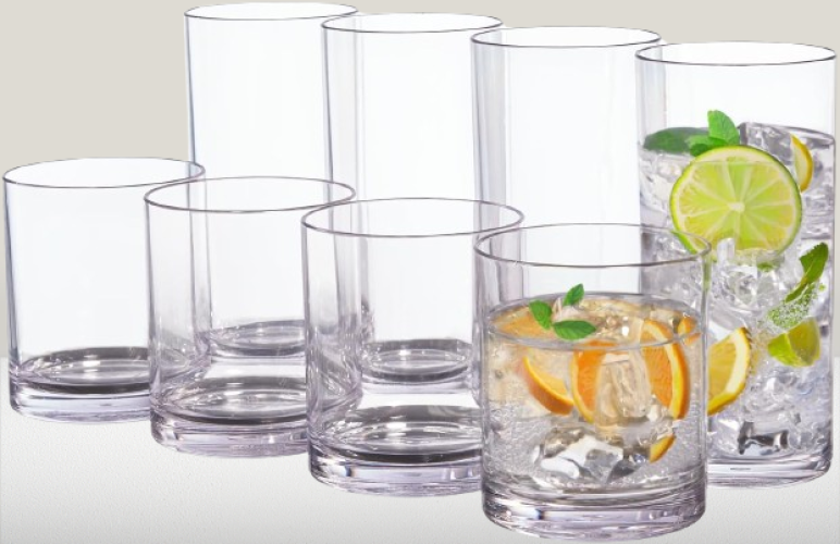 Piensa fuera de la casa: este clásico juego de vidrio de plástico es una gran adición a cualquier dormitorio universitario primer apartamento RV y cámper. Considere agregarlos como un regalo de registro de bodas para un nuevo hogar.