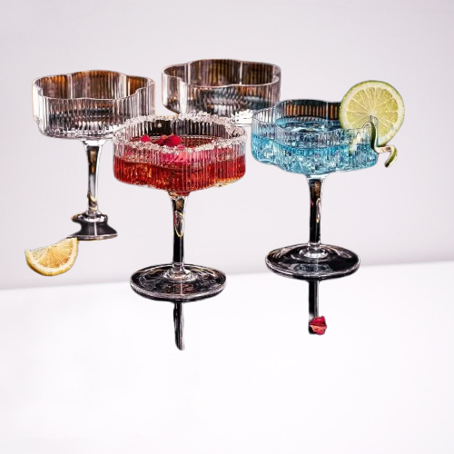 a diferencia de cualquier otra copa de cóctel cuentan con una hermosa textura ondulada para que parezca una obra de arte. Da rienda suelta a tu mixólogo interior añadiendo estos vasos acanalados ondulados a tu bar. El efecto dominó en estas gafas las hace irresistibles ¡un iniciador de conversación por decir lo menos! Además el diseño único le dará a tu cóctel más espacio de remolino y ayudará a que los aromáticos se liberen más lentamente para disfrutar al máximo.