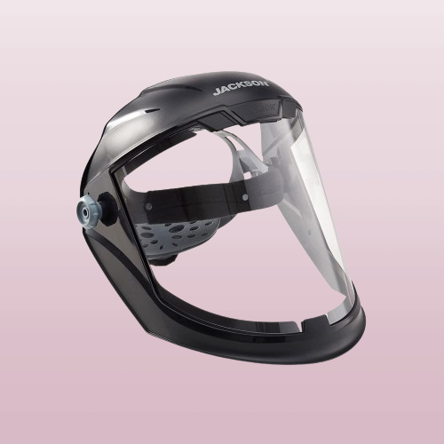 Máxima protección: protector facial prémium con ventana tintada de gran tamaño para una cobertura completa de la cara. Protectores laterales y de barbilla integrados para proteger contra salpicaduras y desechos voladores
